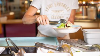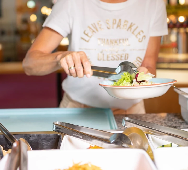 Wir kochen jeden Tag ein abwechslungsreiches Menü für dich und das komplett kostenlos. Dabei legen wir viel Wert auf Regionalität und Frische, es gibt viel Obst und natürlich jeden Tag vegetarische Alternativen. Dein Wohlbefinden und eine gesunde sowie ausgewogene Ernährung sind für uns sehr wichtig.